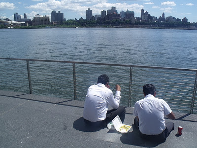 Proseguendo verso il Ponte di Brooklyn, ci si lascia alle spalle i grattacieli e si arriva al mare: qui le persone in giacca&cravatta passano la pausa pranzo, seduti davanti all’acqua a godersi uno spettacolo che chissà se se ne rendono conto, di quanto è è bella la loro città.
