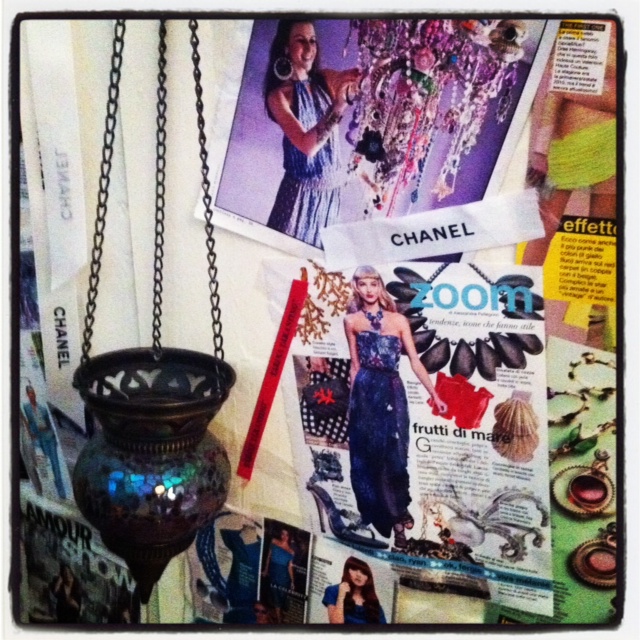 Il mio armadio a muro, con le pagine delle riviste e la lampada presa nel primo viaggio in Turchia
