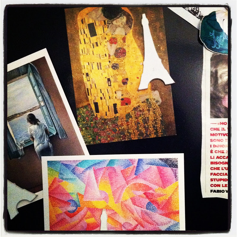 Anch'io attacco cartoline, foto ecc… ovunque! Mi sa che tra poco questa casa sarà già la tua casa….visto che stai già colorandola di te!