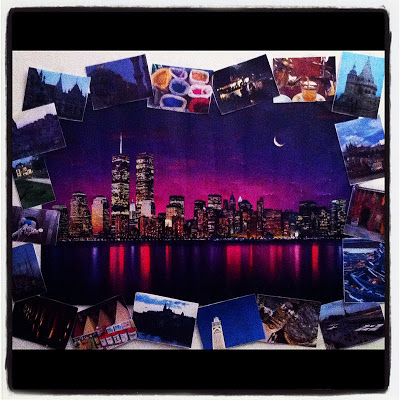 La foto sopra al letto: un poster di NY con attorno le foto dei miei viaggi